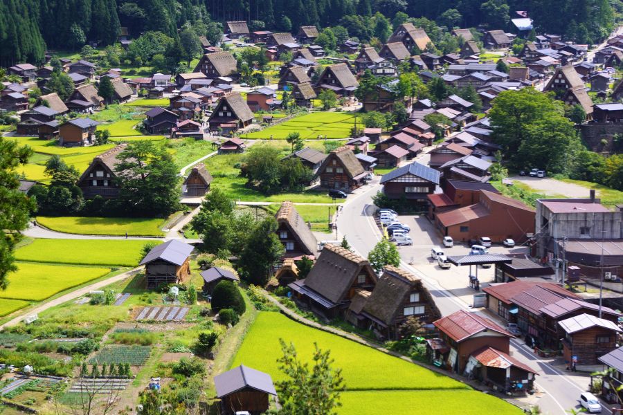 Với hơn 100 ngôi nhà cổ được xây dựng cách đây hàng trăm năm theo phong cách kiến trúc Gassho-zukuri, có nghĩa là “chắp tay cầu nguyện”. Mái nhà được lợp cỏ tranh hoặc rơm rất dày để chống đỡ các lớp tuyết trong mùa đông.