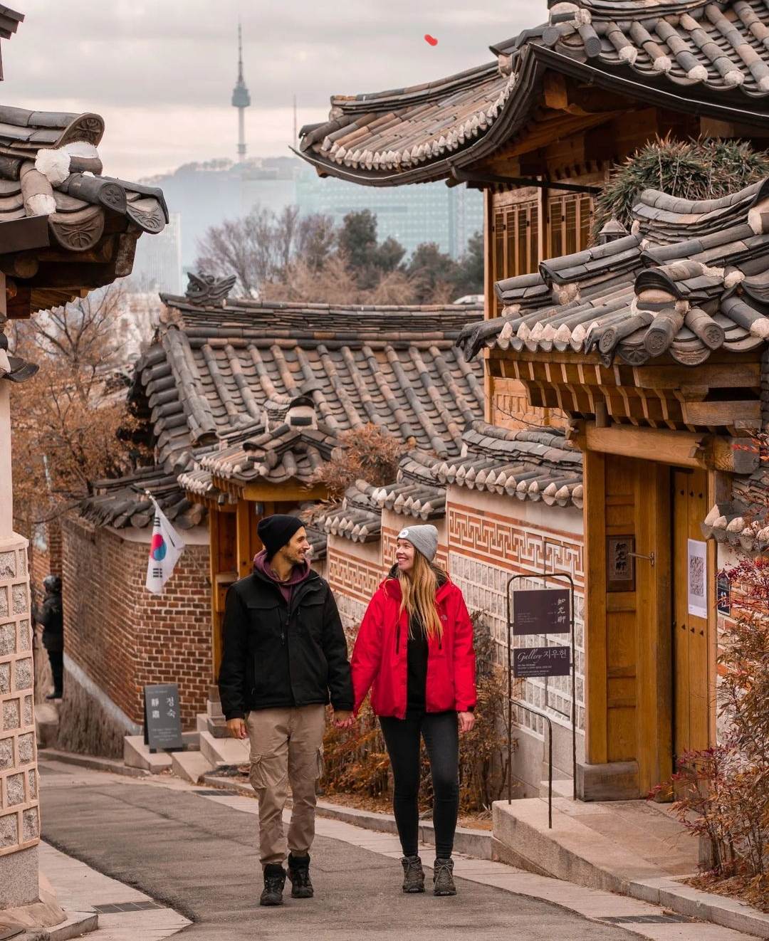 Lọt thỏm trong trung tâm Seoul phồn hoa, Bukchon Hanok lại là một chố yên tịnh và hoài cổ bất ngờ. Ngôi làng lưu giữ tầm 900 ngôi nhà hanok quyền quý vốn là nơi mà các gia đình quý tộc và quan viên triều đại Joseon đã từng sinh sống, cách đây hơn 600 năm. Những ngôi nhà nằm san sát nhau trên nhiều con hẻm nhỏ, tạo nên cảnh sắc hài hòa mà ấn tượng, là một nơi phù hợp để bọn mình tìm hiểu về nền văn hóa đậm đà xứ Kim Chi đó.