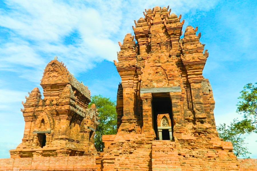Toàn bộ khu tháp gồm có 3 toà chính là Tháp Cổng, Tháp Lửa và Tháp Chính. Tháp được xây dựng đặc trưng theo lối kiến trúc Bà La Môn, thờ phụng vua Po Klong Garai. Những toà tháp này được xây dựng hoàn toàn bằng gạch đỏ và dầu rái vững chắc, phủ đầy rêu phong tạo nên vẻ ngoài cổ kính và huyền bí.