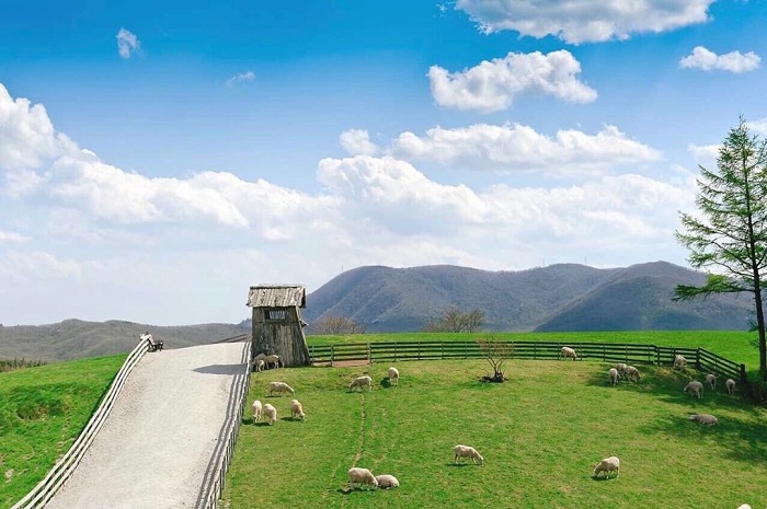 - Trang trại cừu Daegwanryeong Wind Village - Ngắm nhìn khung cảnh thiên nhiên thanh bình, những chú cừu dễ thương đang nhởn nhơ trên những cánh đồng cỏ xanh mượt