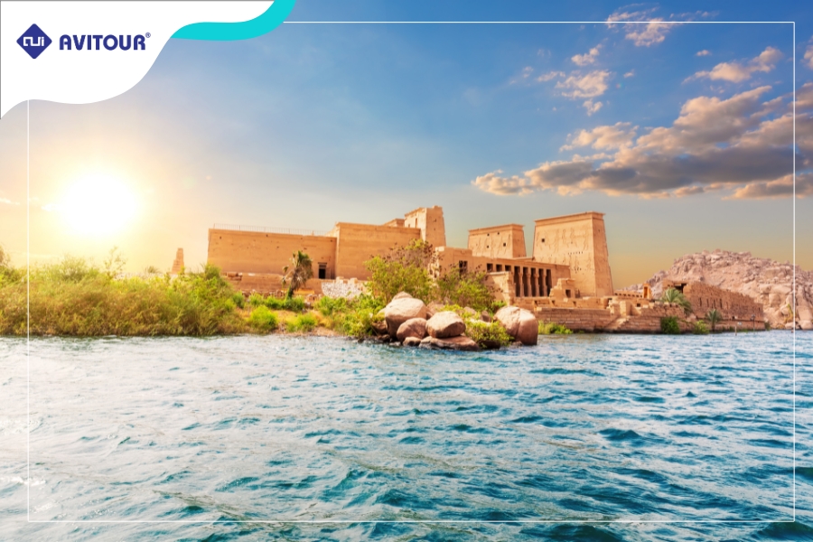 ● Quý khách đổi sang ngồi tàu cano đến đảo Philae - hòn đảo nằm trên phần hồ nước nhân tạo ở hạ nguồn đập Aswan và hồ Nasser để tham quan đền thờ nữ thần Isis – nữ thần quan trọng bậc nhất trong thần thoại Ai Cập cổ.