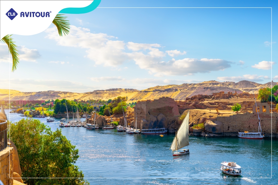 Chiều: Quý khách tham quan và dạo chơi trên sông Nile bằng thuyền Felucca – một loại thuyền buồm nhẹ chạy bằng sức gió. Tham quan vòng quanh các khu đảo Phelatine, đảo Kitchener và ngắm nhìn thảm thực vật phong phú trên đảo. Ngắm nhìn hoàng hôn từ từ buông xuống phía bờ Tây con sông Nile – sông mẹ thần thánh của người Ai Cập.