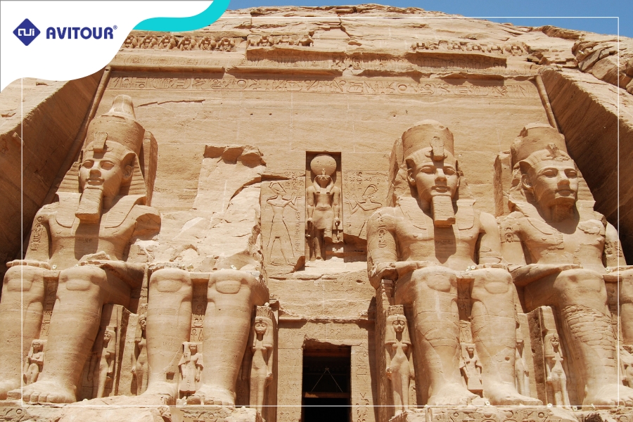 ● Đền Abu Simbel: Ngôi đền to lớn và là minh chứng cho lịch sử rực rỡ của văn minh Ai Cập cổ đại, cũng là minh chứng cho sự nỗ lực của con người hiện đại khi cố cứu ngôi đền khỏi bị ngập nước khi xây dựng con Đập Cao và Đập Aswan. Đền Abu Simbel thờ Ramses II – vị Pharaoh vĩ đại nhất cùng với vợ của ông là Nefertari. Nơi đây cũng nổi tiếng với bốn bức tượng thần Sáng tạo Ptah, thần Mặt trời Amun, thần bảo hộ Re và bản thân Ramses II với lối kiến trúc độc đáo khi vào ngày 20.2 và 20.10 hàng năm ánh nắng sẽ bắt đầu chiếu từ bên ngoài cổng kéo dài vào bên trong, chiếu lên lần lượt ba bức tượng chỉ trừ tượng thần Ptah vì người Ai Cập quan niệm Ptah vĩnh viễn là vị thần thuộc về bóng tối.