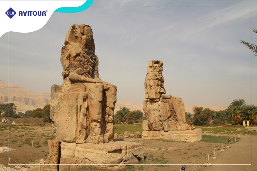● Những bức tượng đá khổng lồ của Memnon: là hai bức tượng đá lớn của Pharaoh Amenhotep III, người cai trị tại Ai Cập trong thời kỳ XVIII. Trong 3.400 năm qua (kể từ năm 1350 TCN), hai bức tượng vẫn luôn nằm trong Khu di tích Theban Necropolis, nằm ở phía tây sông Nile từ thành phố Luxor hiện đại.