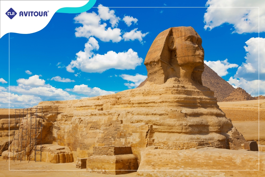 ● Đại tượng Nhân sư: Với hình dáng đầu người mình sư tử được chạm khắc trên một lộ đá với tổng chiều dài lên đến 45m, đại tượng Nhân sư (Sphinx) cũng là một biểu tượng nổi tiếng với lời thách đố: “Con gì buổi sáng đi bằng bốn chân, buổi trưa đi bằng hai chân và buổi tối đi bằng ba chân?”.