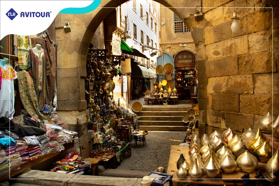 ● Chợ truyền thống Khan El Khalili: Được thành lập từ thế kỷ 14, khu chợ lộng lẫy đầy màu sắc này được coi như tinh hoa của thủ đô Cairo, rất đông du khách và người dân địa phương tìm đến đây để trải nghiệm cảm giác mua sắm thời trung cổ với những làn đường nhỏ ngóc ngách…