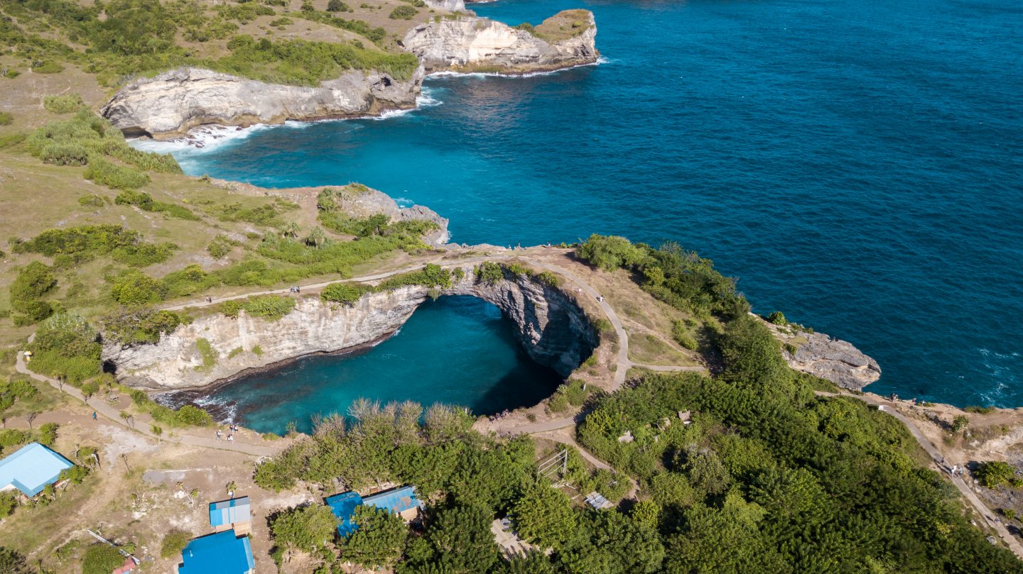 Một chuyến thăm quan Nusa Penida với hành trình đi tàu chỉ 30 phút từ bến Sanur lướt ngang làn sóng xanh biển Bali sẽ đưa tới thăm quan Crystal Bay (địa điểm bơi, lặn với bãi biển đẹp), Kelinking Beach (sống lưng khủng long), Angel Bilabong (hồ hơi tự nhiên nằm giữa biển cả, với làn nước xanh trong như ngọc bích đến nỗi bạn có thể nhìn thấy tận đáy).