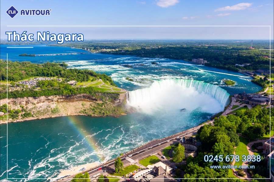 Thác Niagara bao gồm ba thác nước trên sông Niagara chảy từ Hồ Erie đến Hồ Ontario, từ lớn nhất đến nhỏ nhất là: thác Horseshoe - Thác Dấu chân ngựa (còn được gọi là thác Canada), thác American - thác người Mỹ và thác Bridal Veil - Thác Dải khăn cô dâu. Thác Niagara không phải là thác nước cao nhất thế giới, nhưng lại vô cùng nổi tiếng bởi vẻ đẹp của thác đến từ độ cao (176 feet ở một số đoạn) và khối lượng nước đáng kinh ngạc (hơn 700.000 gallon nước mỗi giây đổ qua thác Niagara khi dòng chảy cao điểm vào mùa hè và mùa thu). Từ dưới chân thác, du khách có thể cảm nhận sự vĩ đại của khối nước khổng lồ đổ xuống từ trên trời cao, tạo thành những đám mây sương mù với bảy sắc cầu vồng lung linh và huyền ảo... Quý khách tiếp tục lên du thuyền “Hornblower Niagara City Cruises” (đóng cửa vào mùa đông), tận hưởng cảm giác hồi hộp cực độ khi tàu đương đầu trực tiếp với ngọn thác vĩ đại này.