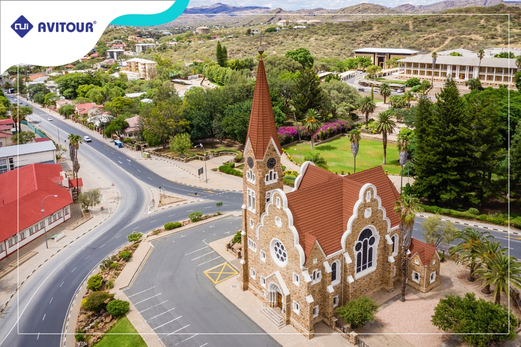 Chiều: Hạ cánh tại sân bay Windhoek, đoàn làm thủ tục nhập cảnh, xe ô tô và hướng dẫn viên đón đoàn khám phá thủ đô Windhoek với những công trình nổi bật về văn hóa cũng như lịch sử của đất nước Namibia: