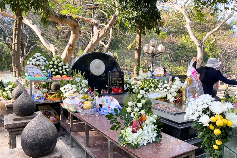 Trong khu vực trung tâm nghĩa trang có mộ Võ Thị Sáu - nữ tử tù đầu tiên tại Côn Đảo. Đây là một điểm được nhiều du khách lựa chọn đến thăm viếng. Cô Sáu ra đi khi tuổi đời chưa tới đôi mươi nên sự hiển linh của cô rất lớn. Người Việt quan niệm "có thờ có thiêng, có kiêng có lành". Nên khi ai đến Côn Đảo đều tới lạy cô Sáu 1 lần rồi mới di chuyển đi những địa điểm khác.