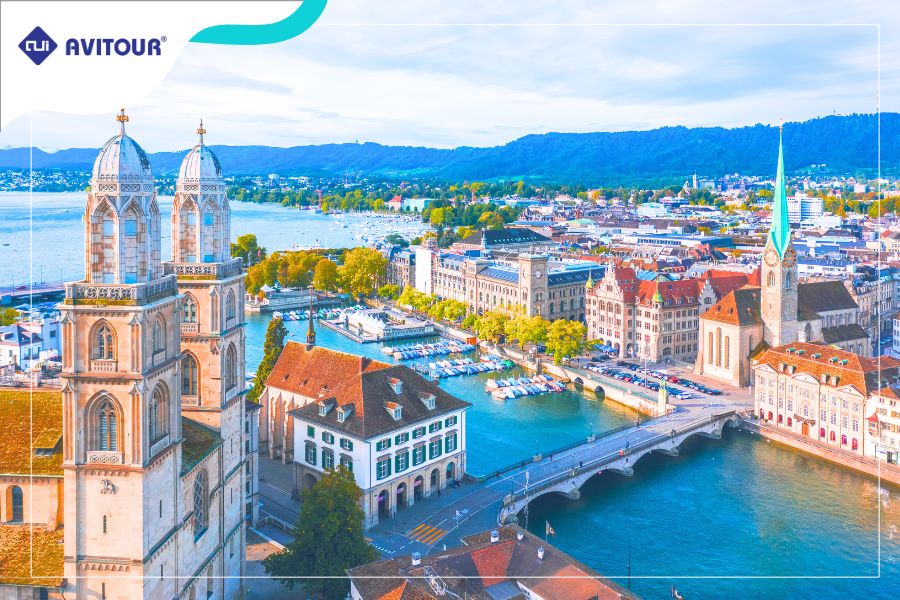 Sáng: Đoàn dùng bữa sáng tại khách sạn. Xe đón đoàn tham quan thành phố Zurich - Được biết đến là thành phố lớn nhất Thụy Sĩ, nổi tiếng với vẻ đẹp cổ kính, mang kiến trúc, nghệ thuật trung cổ đầy màu sắc, không gian mặt nước thanh binh. Đoàn tham quan: