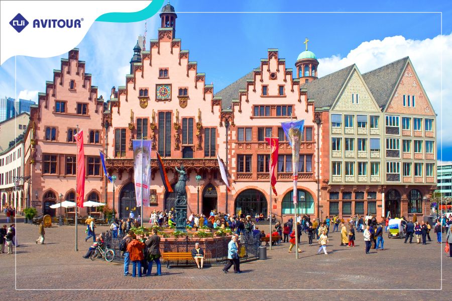 ● Quảng trường Romerberg – Römerberg là khu phố cổ, trái tim của TP Frankfurt đẹp như tranh vẽ… Quảng trường Romerberg là phần trung tâm lịch sử ít ỏi mà Frankfurt giữ lại được sau nhữg cuộc chiến tranh. Bao quanh quảng trường là những toà nhà có kiến trúc từ thế kỉ 15.