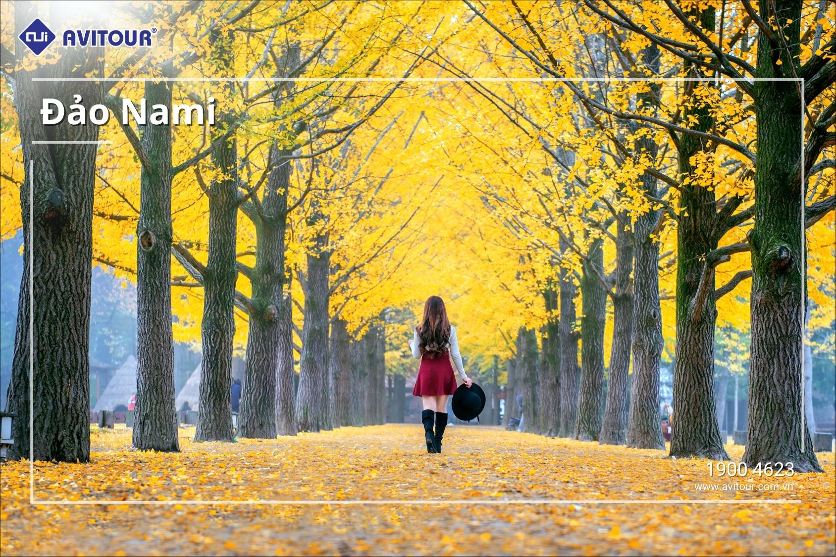 - Đảo Nami - với những hàng cây ngân hạnh vàng óng và những cây phong đỏ rực lá.