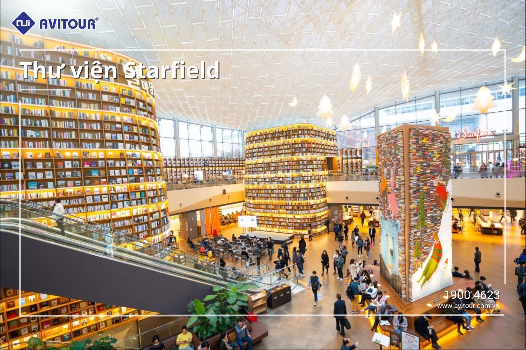 ● Thư viện Starfield – (Starfield Library) nằm ở khu trung tâm thương mại Coex ở Gang Nam, là thư viện thu hút lượng lớn khách du lịch nhờ kiến trúc độc đáo. Đây là điểm check-in rất hot trên instagram của các hot blogger.