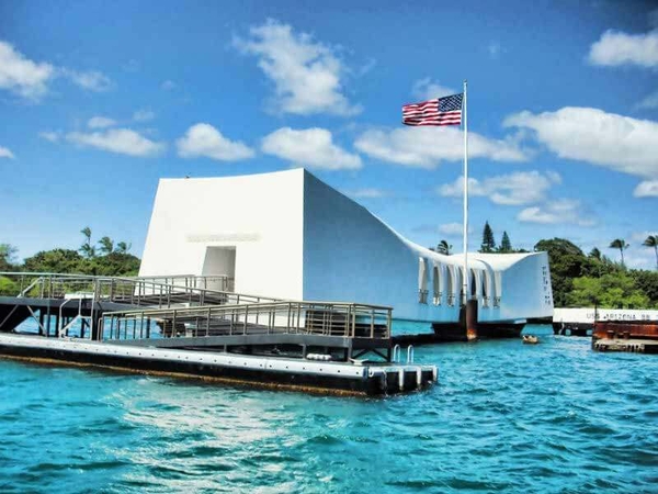 ➢ Đoàn tham quan Trân Châu Cảng Pearl Harbor (tham quan bên ngoài) – nơi đóng quân của Hải quân Hoa Kỳ khu vực TBD, và là nơi ghi dấu cuộc tấn công quân sự bất ngờ của Hải quân Nhật thực hiện nhằm vào căn cứ Hải quân của Hoa Kỳ vào sáng Chủ Nhật, ngày 7 tháng 12 năm 1941, dẫn đến việc Mỹ quyết định tham gia vào hoạt động quân sự trong Thế chiến 2.