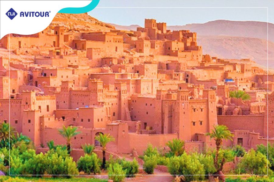 10h30: Tham quan Kasbah AIT BEN HADDOU, bối cảnh của rất nhiều bộ phim cổ trang, và được nhắc đến như một trong những phim trường cổ trang sống động nhất thế giới. Ait Benhaddou được Unesco công nhận là di sản thế giới năm 1987 sau khi thỏa mãn những tiêu chí về giá trị văn hóa, kiến trúc và lịch sử.
