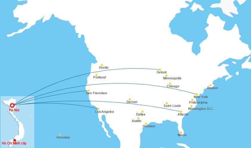 Ghi chú: Do chênh lệch múi giờ nên ngày khởi hành ở Việt Nam bay đến New York vẫn là ngày đầu tiên (Ví dụ: Ngày khởi hành là ngày 1/10 tại Việt Nam thì ngày đến New York vẫn là ngày 1/10 tính theo giờ địa phương).