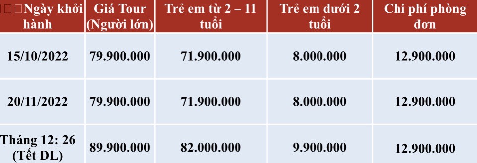 GHI CHÚ: Quý khách có thể ở lại thăm thân nhân theo thời hạn nhập cảnh cho phép (chi phí đổi vé sẽ áp dụng theo ngày đổi vé) Tự túc chi phí sau khi tách đoàn.