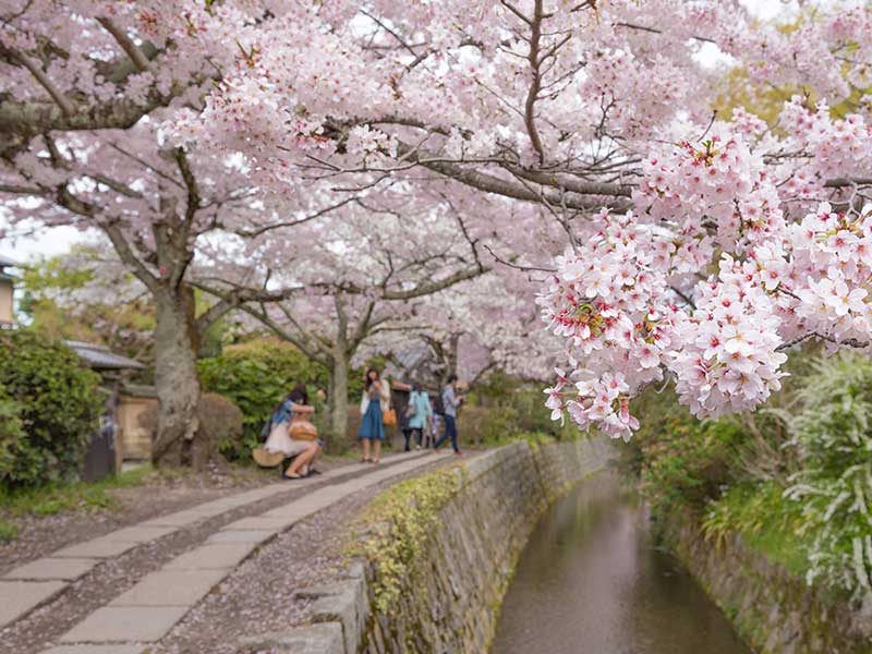 - Con đường triết học - Là một trong những con đường thu hút đông đảo du khách ghé thăm vào mùa hoa anh đào ở Kyoto, “Con Đường Triết Học” (Tetsugaku no Michi) là một con đường nhỏ lát đá xinh đẹp chạy dọc theo một con kênh của hồ Biwa. Hai bên con đường là những hàng cây anh đào rực rỡ khi mùa xuân về tạo nên một bức tranh thanh tĩnh và thơ mộng.