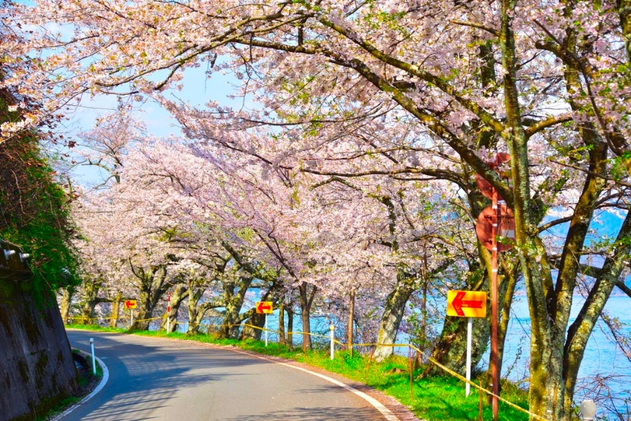 Hồ Biwa ở tỉnh Shiga là hồ lớn nhất tại Nhật Bản. Du khách chỉ mất khoảng 10 phút đi tàu từ ga Kyoto để đến địa điểm này. Nơi đây sở hữu những cây hoa anh đào hai bên bờ kênh đào. Con đường hoa anh đào Kaizu Osaki dài tới 4km với 600 cây hoa anh đào trải dọc bờ hồ.