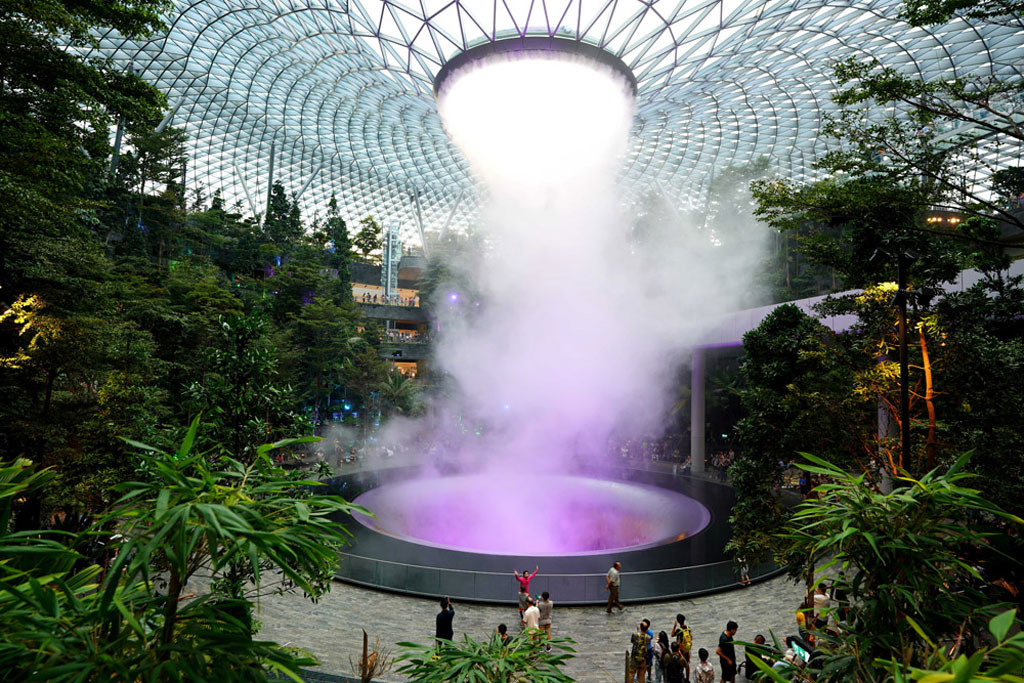 - Thác nước Jewel khổng lồ trong sân bay Changgi: khu phức hợp Jewel nằm trong nhà ga T1 của sân bay Changgi, là nơi có thác nước trong nhà cao nhất thế giới (cao tới 40m). Quý khách khám phá các điểm tham quan vui chơi lí thú ở công viên Canopy Park như: trải bước theo những con đường mòn trong vườn cây xanh mướt ở Toperator Walk, trượt ống trong những đường trượt khổng lồ ở Discovery Slides, hoặc đắm mình trong những khu vườn sương nhân tạo, mờ ảo Foggy Bowls…Một trải nghiệm thú vị được yêu thích nhất ở đây chính là Sky Net – một mạng lưới khổng lồ gồm những chiếc dây dù cứng đan vào nhau, treo lơ lửng được thiết kế giống như đường đi bộ xung quanh công viên nhưng ở độ cao hơn 25m so với mặt đất, vườn mê cung Hedge Maze, mê cung Mirror Maze…