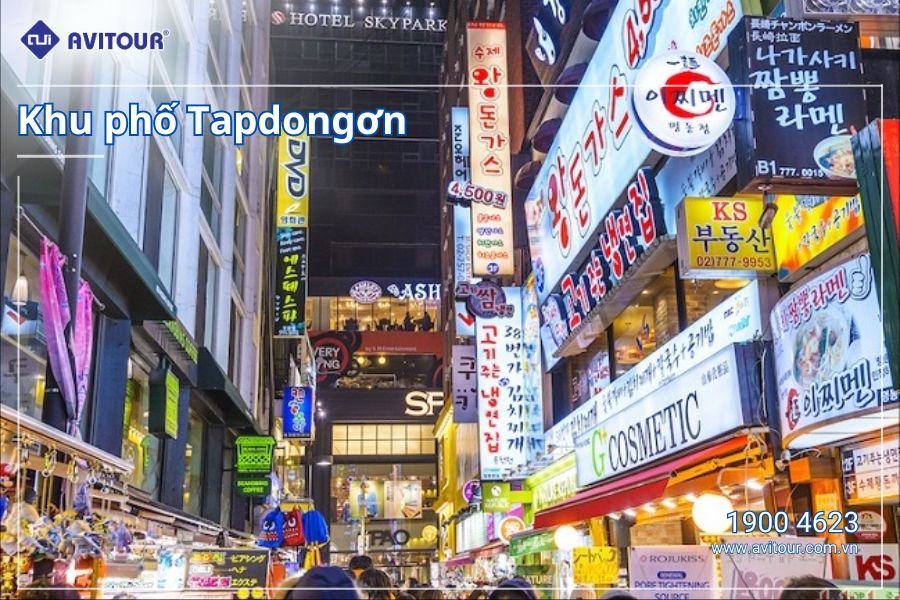 Tham quan khu phố Tapdong: phố Tapdong ở Jeju là một điểm du lịch nổi tiếng trong tour du lịch hàn quốc. Tapdong không chỉ là nơi để du khách thư giãn, quan sát cuộc sống thường ngày của người dân xứ Hàn mà nơi đây còn vô cùng náo nhiệt với những trung tâm thương mại và cửa hàng thời trang.
