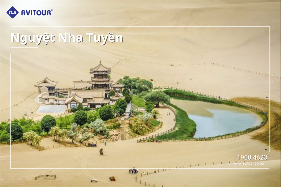 ● Nguyệt Nha Tuyền (hay Hồ Bán Nguyệt) tồn tại ít nhất 2000 năm, một trong tám cảnh đẹp nổi tiếng của Đôn Hoàng. Ốc đảo này nổi tiếng với một bề dày văn hóa khá lâu đời: đây là điểm dừng chân không thể bỏ qua của các thương nhân Ả Rập trên Con Đường Tơ Lụa huyền thoại. Đồng thời, nó cũng nằm trên tuyến hành trình về với cõi Phật của các tín đồ Phật giáo từ khắp nơi. Với người Trung Hoa cổ đại, ốc đảo này được mệnh danh là cửa ngõ phía Tây của Trung Quốc. Đến đây, du khách sẽ có dịp chiêm ngưỡng vẻ đẹp của những công trình kiến trúc mang đặc trưng phong kiến xưa, không khác gì một cung điện giữa sa mạc hoang vu. Dọc theo bờ hồ Nguyệt Nha Tuyền là một ngôi chùa mang kiến trúc truyền thống Trung Hoa, được xây dựng từ thời nhà Hán.