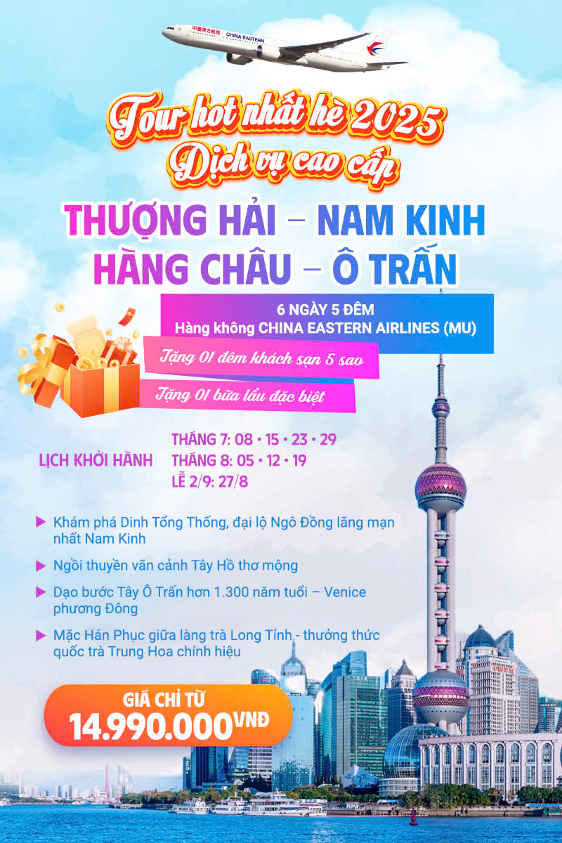 Sáng: Sau ăn sáng, du khách khởi hành đi Hàng Châu.