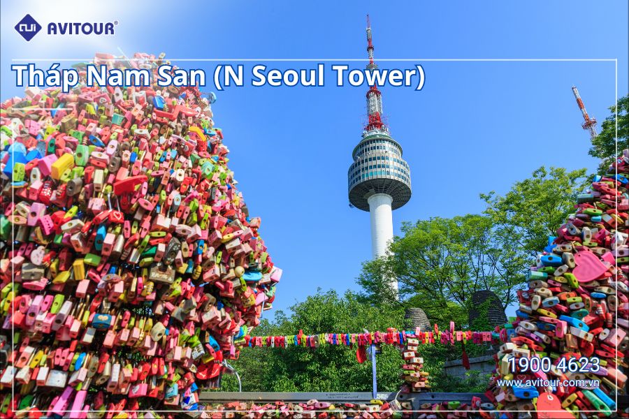 ● Tháp Nam San (N Seoul Tower) -một biểu tượng và là nơi cao nhất thành phố Seoul. Nơi có những móc khóa tình yêu được gắn lên bởi hàng triệu cặp đôi đến từ khắp nơi trên Thế Giới. Bạn có thể lên đỉnh tháp để ngắm toàn cảnh Seoul bằng thang máy (chi phí tự túc).