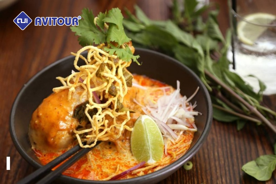 Đây là món ăn thanh đạm, tinh tế và phong phú về hương vị. Khao Soi có thành phần như nước dừa, bánh mì và thịt bò nướng. Món ăn đa dạng này phù hợp với nhiều khẩu vị và sở thích ẩm thực khác nhau.