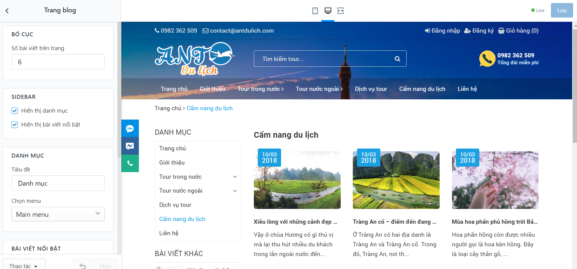 Ant Du lịch là một giao diện được thiết kế chuyên biệt cho website dịch vụ tour du lịch, khách sạn.