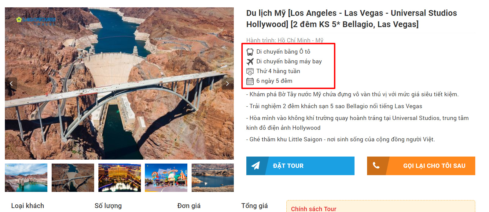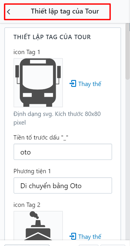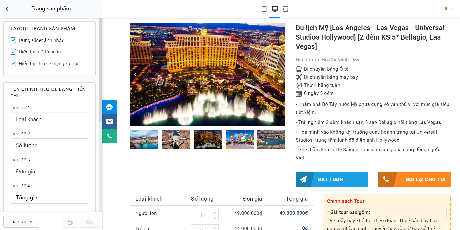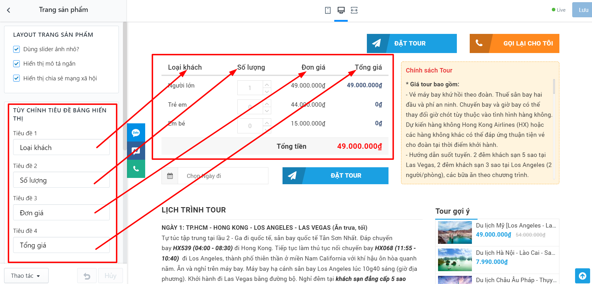 Bạn có thể thay đổi tiêu đề của các mục hiển thị khi đặt Tour: