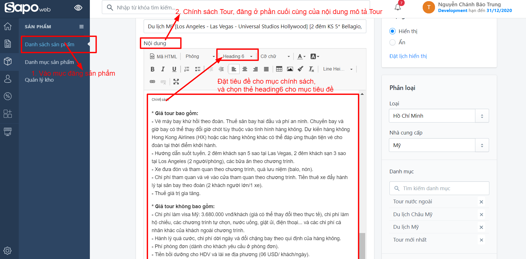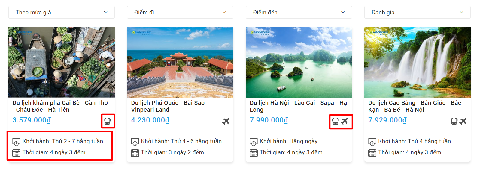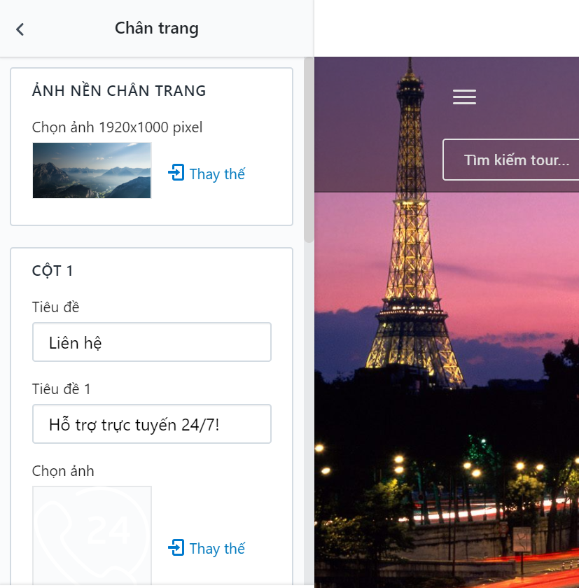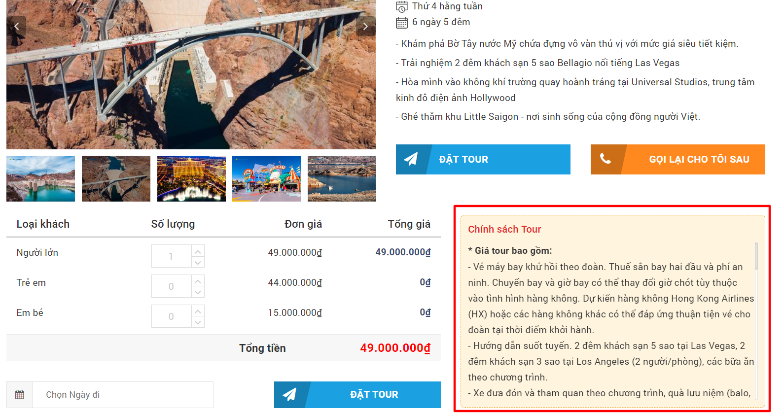 Bạn có thể thay đổi tiêu đề của các mục hiển thị khi đặt Tour: