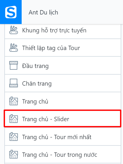 Đầu tiên bạn tìm đến Trang chủ - Slider: