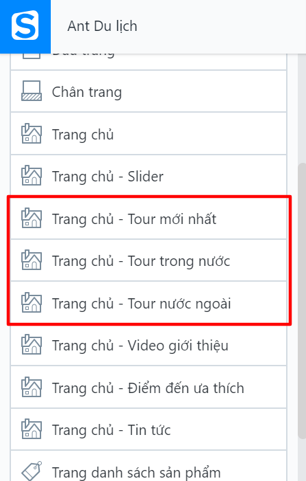Để chọn lựa và sắp xếp các module trang chủ, bạn cần tìm đến thiết lập TRANG CHỦ: