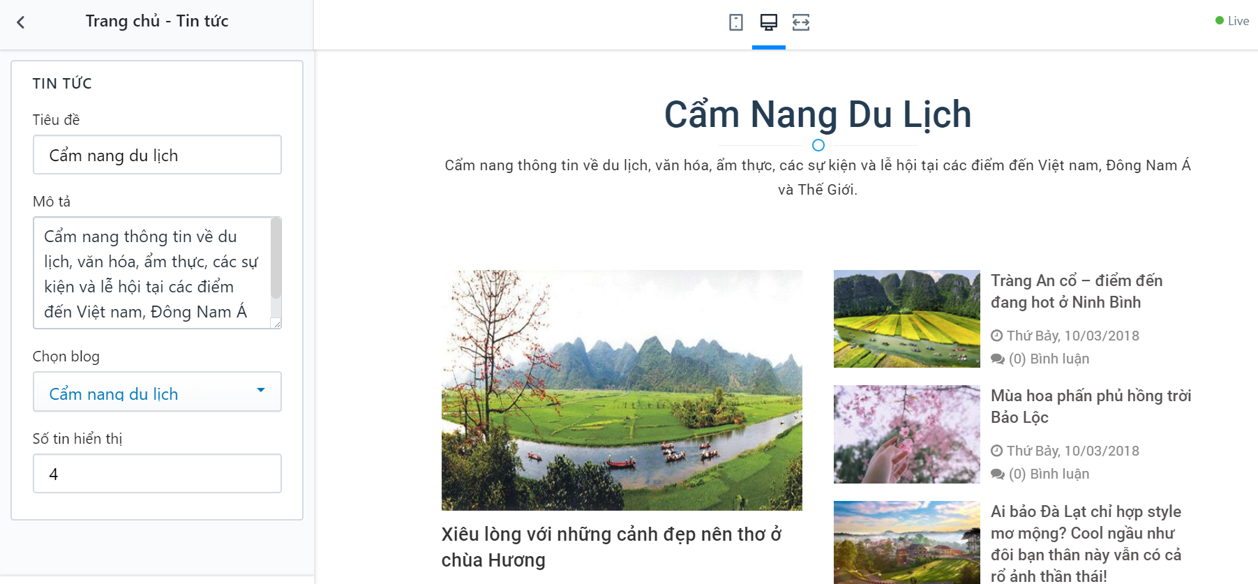 Ở đây, chúng tôi cho phép bạn lựa chọn số lượng tin hiển thị.