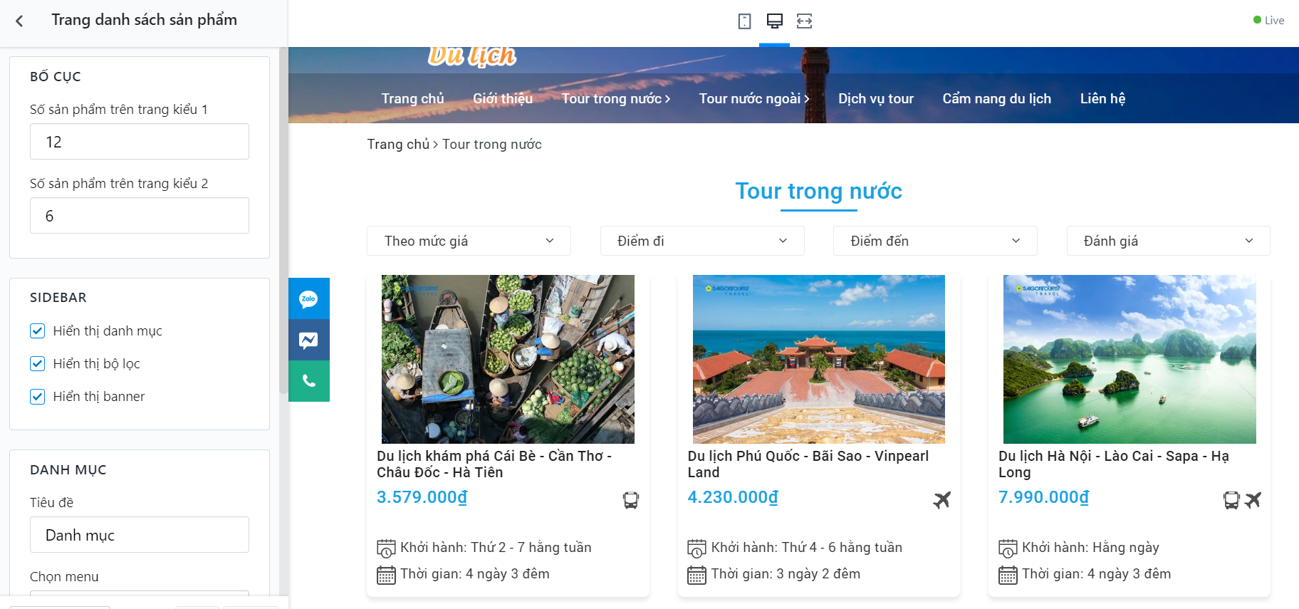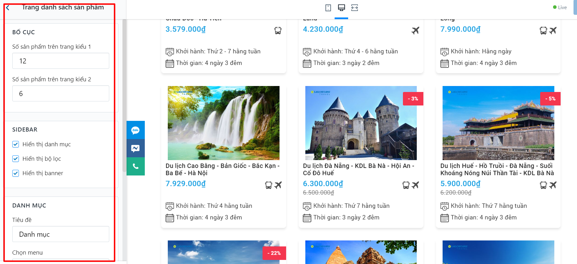 Bạn cần tìm đến thiết lập TRANG DANH SÁCH SẢN PHẨM