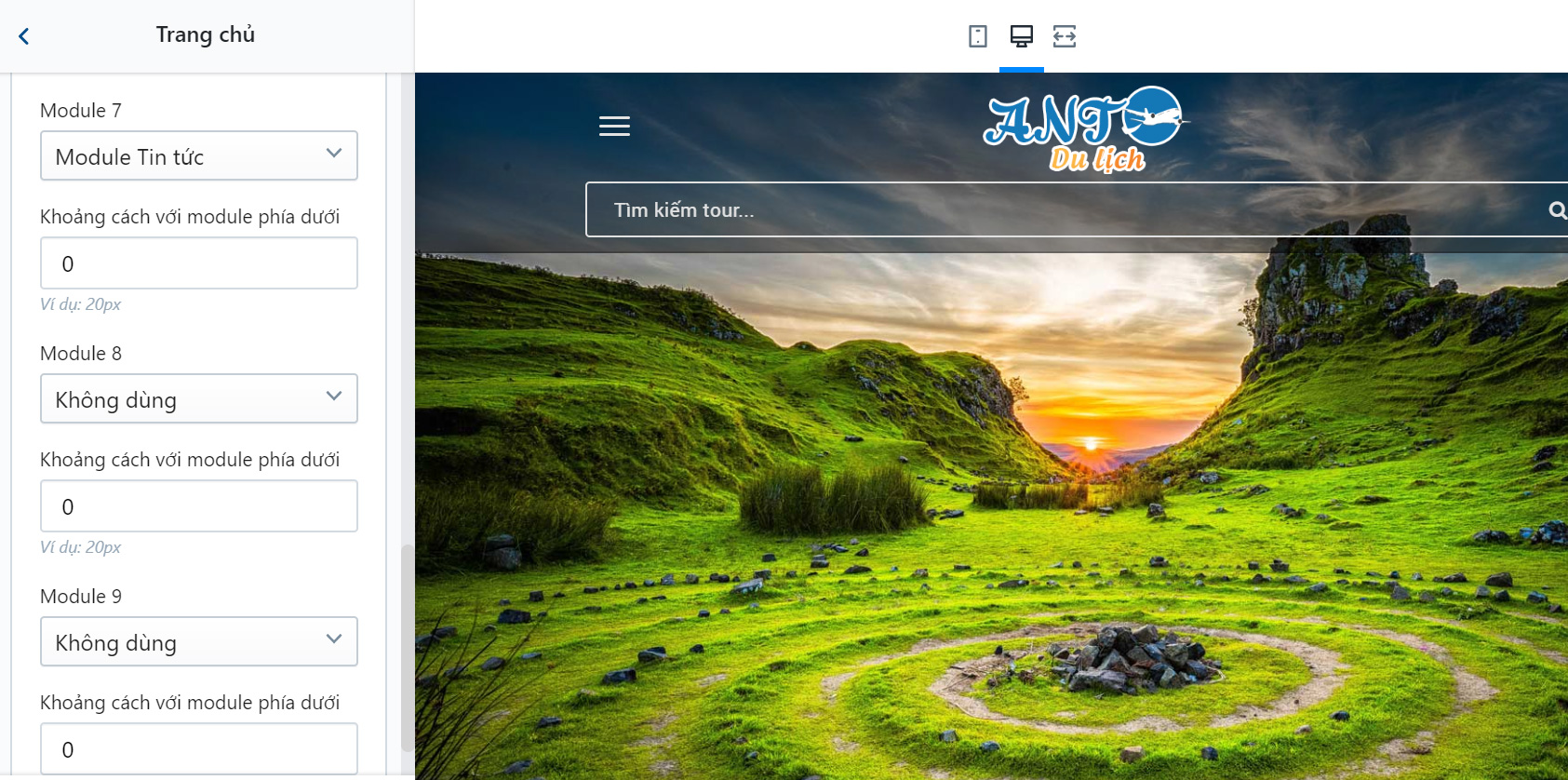 Trên trang chủ, chúng tôi chung cấp 9 module cho phép bạn có thể lựa chọn và sắp xếp vị trí của chúng trên trang chủ