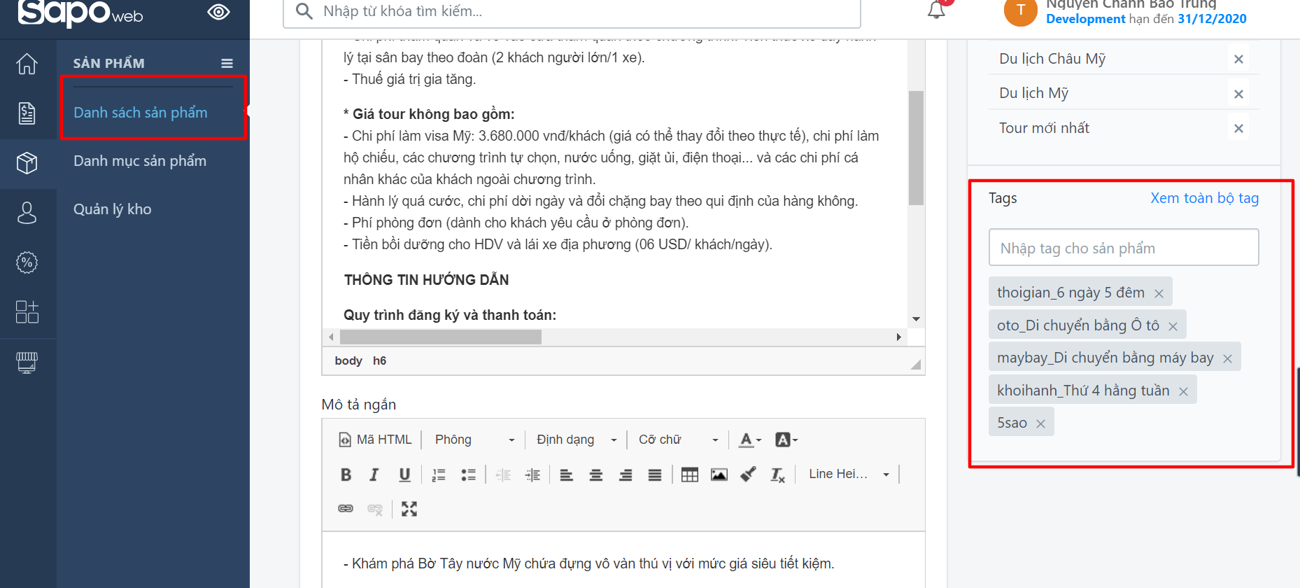 Vào mục đăng sản phẩm, các bạn nhập tag cho từng sản phẩm theo cú pháp sau để hiển thị:
