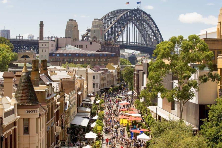 Phố cổ The Rocks thu hút du khách cũng như người dân địa phương với các bảo tàng và phòng trưng bày, những chợ cuối tuần sôi động và các khách sạn nhìn ra cảng Sydney náo nhiệt. Nếu ghé thăm vào cuối tuần, du bạn có thể dạo bước quầy hàng tại Chợ The Rocks. Bạn có thể chọn mua vài món đồ thủ công từ chính tay người dân bản địa về làm quà.