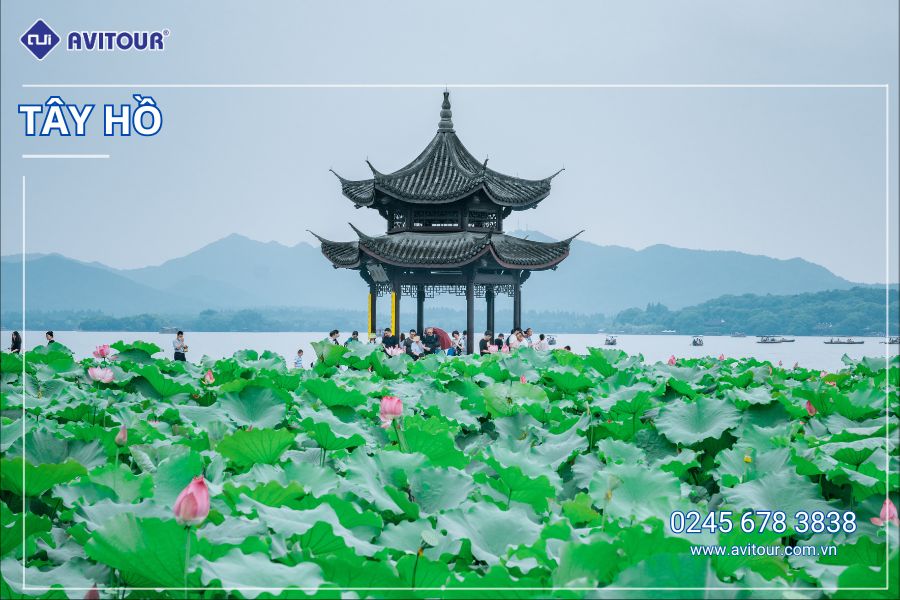 Sau bữa trưa - du khách ngồi thuyền thưởng ngoạn Tây Hồ - được xem là đẹp và nên thơ nhất trong hơn 36 hồ có cùng tên ở Trung Quốc,tham quan Khúc Viện Phong Hà, nhìn ngắm tham quan bên ngoài Tháp Lôi Phong, Tam Đàn Ấn Nguyệt. gắn liền với những truyền thuyết về Lương Sơn Bá - Chúc Anh Đài, nhà thơ Lý Bạch, Thanh xà - Bạch xà. Sau đó du khách thăm làng trà Long Tỉnh nổi tiếng - thưởng thức quốc trà Trung Hoa, tham quan trải nghiệm mặc Hán Phục giữa đồi chè xanh mướt.