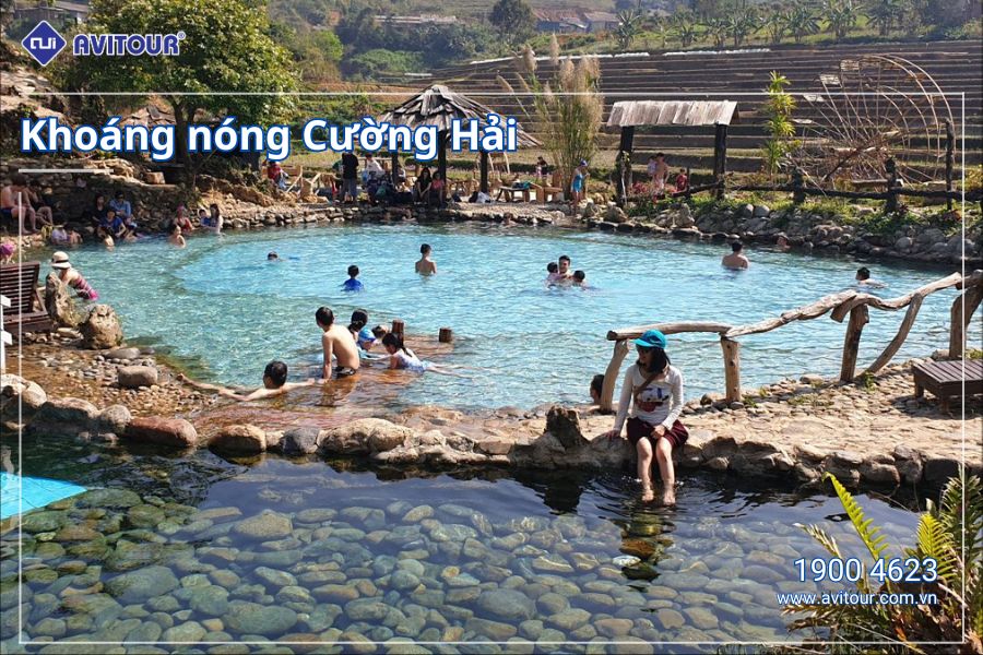08h00: Quý khách tập trung lên xe ô tô di chuyển đến suối khoáng nóng Cường Hải, bể bơi khoáng nóng lộ thiên lớn nhất Trạm Tấu. Đoàn tự do tắm khoáng (Chi phí vé 120.000đ quý khách tự chi trả)